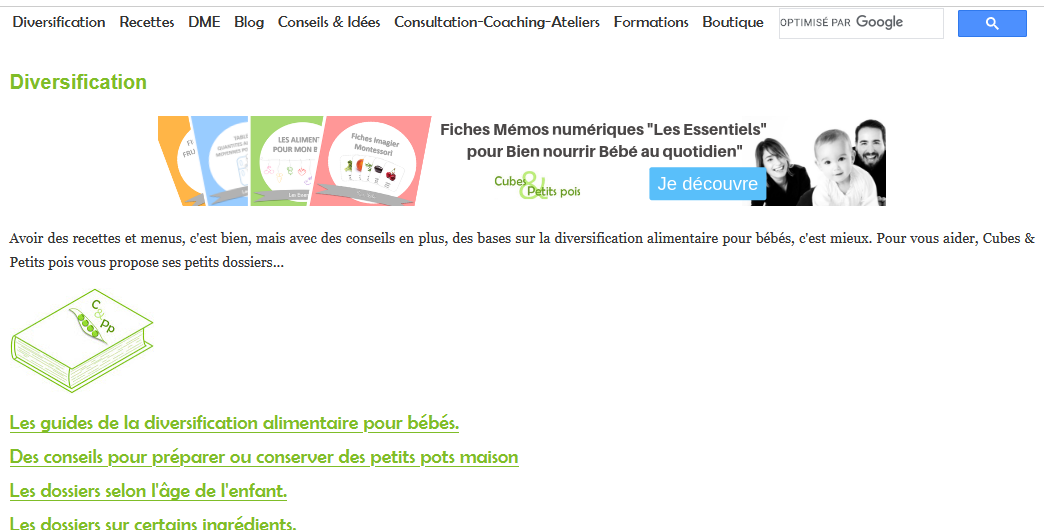 Christine Zalejski, l’autrice de l’excellent livre « 365 recettes pour bébé: De 4mois à 3 ans » a réalisé un site fantastique pour la diversification alimentaire avec des masses de recettes et de conseils.